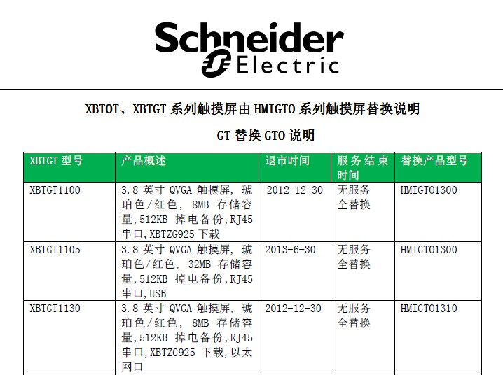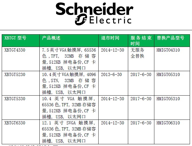 施耐德XBTGT XBTOT 部分型號(hào)已停產(chǎn)替代型號(hào)如下